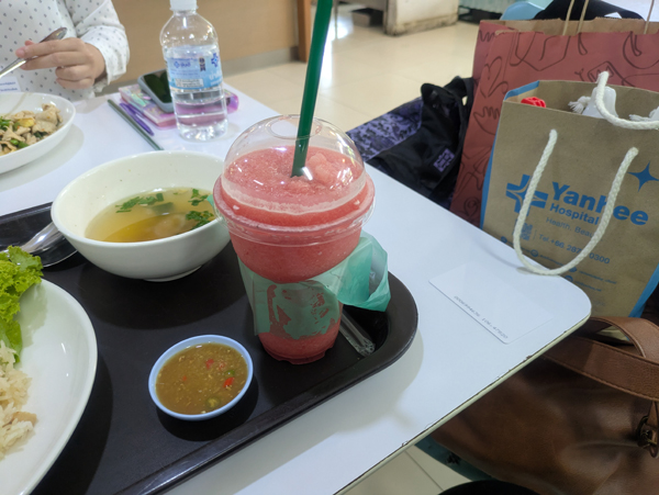 ナイパ先生の次は、耳鼻咽喉科のオウンマ先生との予定なのですが、診察が立て込んでいてしばらく時間が掛かるとのことだったので、病院1階のフードコートで皆さんと一緒にランチをいただきました。